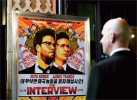 [북한은 서늘하게 경고했다.] <인터뷰> 예고편이 나오고 상영을 앞둔 시점에 ‘평화의 수호자’(GOP)라고 밝힌 단체가 영화를 배급하는 미국 소니영화사를 해킹했다. 사이버 테러에 그치지 않았다. 이 단체는 지난 12월16일 웹사이트에 “이 영화가 상영되는 장소에서, 테러에서 재미를 추구하는 사람들이 얼마나 쓰라린 운명을 맞이할 것인지를 분명히 보여줄 것이다. 세계가 두려움으로 가득할 것이다. 2001년 9월11일을 기억하라”는 글을 올렸다. 백악관도 예민한 반응을 보였다. 조시 어니스트 백악관 대변인은 18일 평화의 수호자들의 소니영화사 해킹 등에 대해 “심각한 국가안보 문제로 여겨져, 백악관 안보팀이 ‘비례적 대응’을 검토하고 있다”고 밝혔다. 영화관들은 서둘러 상영을 취소했다.