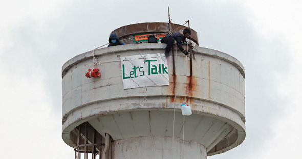 굴뚝에서 이창근 실장은 “이제야 링에 올랐다”고 했다. “지금까지는 교섭을 위한 장외 싸움이었다. 마침내 본게임이 시작된다. 링에 올랐다면 서로가 규칙에 따라 경기해야 한다. 글러브를 빼고 하는 복싱은 반칙이다. 상호 신뢰를 전제로 한다. 치열하게 싸우면서 양보와 타협도 해야 한다. 사회적 연대가 더욱 본격화돼 힘을 실어줘야 하는 이유다.”