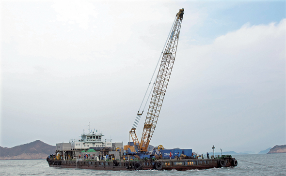 세월호 선체 인양 여부를 판가름할 사전조사는 오는 3월까지 3단계로 진행된다. 1월10일부터 닷새간 진행된 한국해양과학기술원 소속 다목적 해양연구선 이어도호(357t급)의 해저 지형 탐사가 1단계였다. 세월호는 좌현이 아래로 향한 채 수심 37m 아래(해저면 기준)에 있고, 선체 일부는 펄에 묻힌 상태다. 탐사팀은 전남 진도군 조도면 병풍도 북쪽 3.3km 세월호 사고 지점 주변의 정밀 해저 지형과 해저면의 퇴적물 구성 및 하부 지층 구조 등 해저 환경 정보를 조사했다. 그 결과 해저 지형이 평탄하고 암석이 거의 없는 것으로 파악됐다. 인양에 큰 무리가 없다는 의미다.