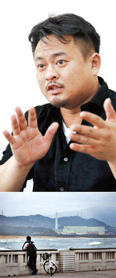 한국을 찾은 훙선한 녹색공민행동연맹(GCAA) 부비서장의 모습(위)과 대만 신베이시 궁랴오구에 있는 룽먼 4호기 핵발전소의 모습. 정용일 기자, 한겨레 김명진 기자