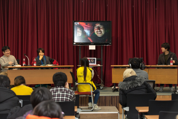 이창근 잘 안 들린다. 고함 지르듯 말해달라. (청중 웃음) 브라운관은 패널들 중앙에 배치됐다. 객석을 향해 맞춰진 영상통화 카메라는 이창근·김정욱의 시선이기도 했다. 그들에겐 사회자의 얼굴이 보이지 않았다.