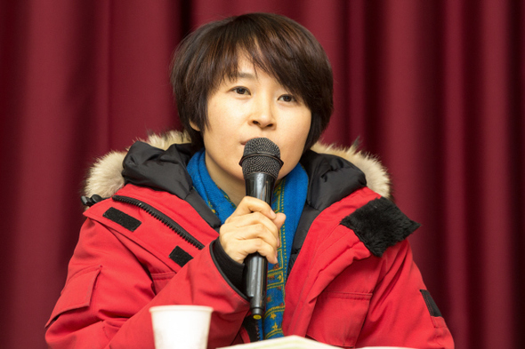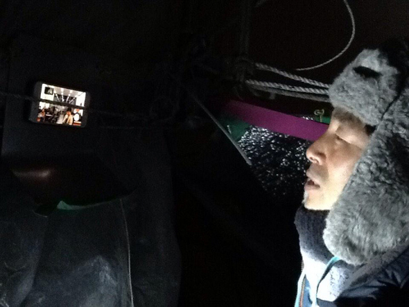 김정욱 못한다. 오전에 따뜻한 물이 올라왔다. 저녁에 북토크도 있고 해서 외모를 신경 쓰다보니까 (웃음) 샤워를 하려고 물을 뒤집어썼다. 머리에 비누칠을 하자마자 얼어버렸다. 이곳은 날씨 변화가 심하다. 몽둥이로 두들겨맞는 것처럼 근육이 아프다. 고무주머니에 담아 올려주는 온수를 끌어안고 자면 좀 낫다. 권 PD님 나중에 고공농성 할 때 참고하시라. (청중 웃음)