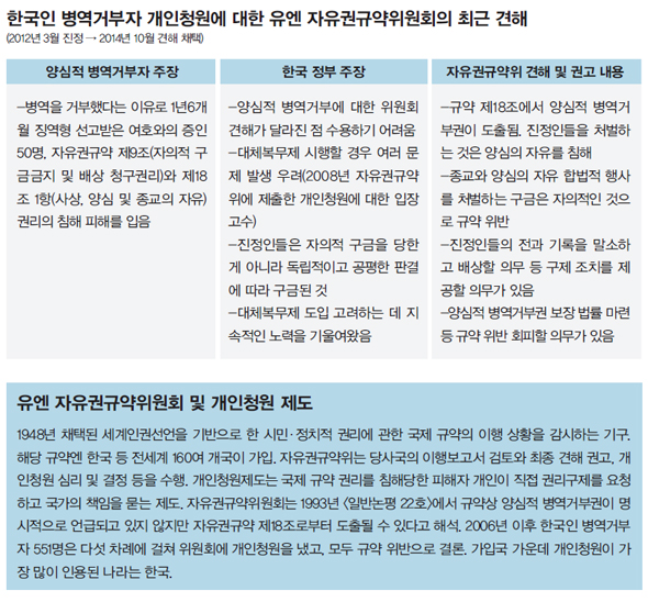 “한국은 양심적 병역거부라는 합법적 자유를 ‘자의적으로’ 박탈하고 있다.”