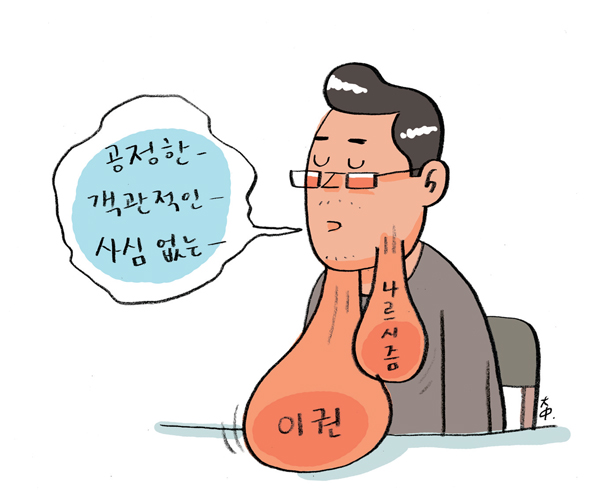 그렇기에 나는 ‘말하는 자’의 어떤 행태가 짜증나더라도 약간의 연민의 정을 가져줄 것을 독자에게 당부드린다. 이런 사회에서 공적 발언을 하는 이들은 이해관계에 적극적으로 영합하는 이와 자신의 나르시시즘으로 모종의 공정함에 대한 환상을 만들어내는 이로 양분된다. 전자가 훨씬 많은데, 후자는 자신을 특별한 존재라고 착각하니 생활인들이 보기엔 짜증이 난다. ‘진보의 싸가지’를 운운하는 것도 이런 생태계와 관련 있을 것이다. 그리고 이런 세태를 약간이라도 반전시킬 숨구멍을 어떻게 만들어낼 것인지가 나 같은 이의 고민이다.한윤형 칼럼니스트