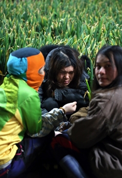 정부 합동단속반에 체포된 여성 이주노동자들이 수갑을 찬 채 대파 사이에 앉아 소리 없이 울고 있다.