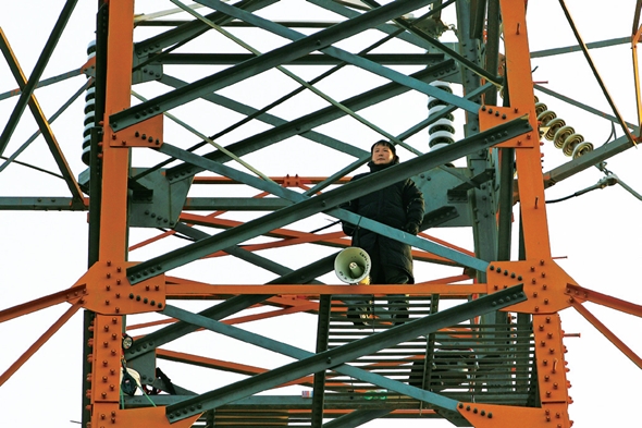 강병재 대우조선하청노동자조직위원회 의장은 4년 전의 복직 약속이 이행되지 않자 2번째 고공농성을 시작했다. 그가 2011년 88일 송전탑 농성을 벌일 때의 모습. 정택용 제공