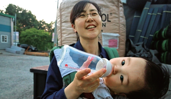 인천 서구 검암동에 있는 청년들의 주거 공동체 ‘우동사’에 사는 막내 ‘쑥쑥이’와 엄마 이성희씨.