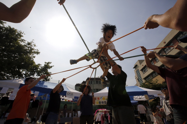 지난 5월31일 서울 마포구 성산동 성서초등학교 운동장에서 열린 ‘성미산마을축제’ 모습. 성미산마을은 주거 대안을 꿈꾸는 사람들이 모여 있는 대표적인 공동체다.
