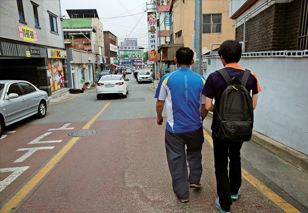 퇴원하고 택배일도 걷어치웠다. 그리고 시작한 게 지금까지 10년 넘게 하는 공사판 막일이다. 그는 자재 정리 일을 한다. 호탕하게 철용씨가 소주 한 잔을 더 넘겼다. 창밖이 어두워졌다. 근처 공원으로 자리를 옮겼다. 초저녁 언덕배기 공원의 벤치에서 그는 담배를 하나 피워 물었다. “아드님은 어떠세요?” 묻는 기자의 질문에 그는 지는 해를 바라보았다. 담배 연기가 제멋대로 바람에 날렸다.