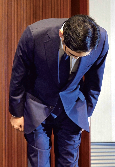 01 이재용 삼성전자 부회장이 6월23일 서울 서초동 삼성전자 사옥에서 중동호흡기증후군(메르스) 사태와 관련해 직접 대국민 사과문을 발표했다. 이 부회장은 “삼성서울병원이 메르스 감염과 확산을 막지 못해 국민에게 너무 큰 고통과 걱정을 끼쳤다. 머리 숙여 사죄한다”고 밝혔다. 이 부회장은 지난 5월15일 서울삼성병원을 운영하는 삼성생명공익재단 이사장직을 이건희 회장으로부터 넘겨받았다.