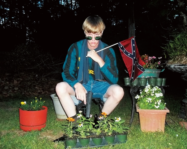 지난 6월 미국 사우스캐롤라이나 찰스턴 흑인교회의 총기난사범인 ‘딜런 루프’는 백인우월주의자로 드러났다. 그가 들고있는 깃발은 인종차별의 상징인 남부연합기이다. AFP 연합뉴스
