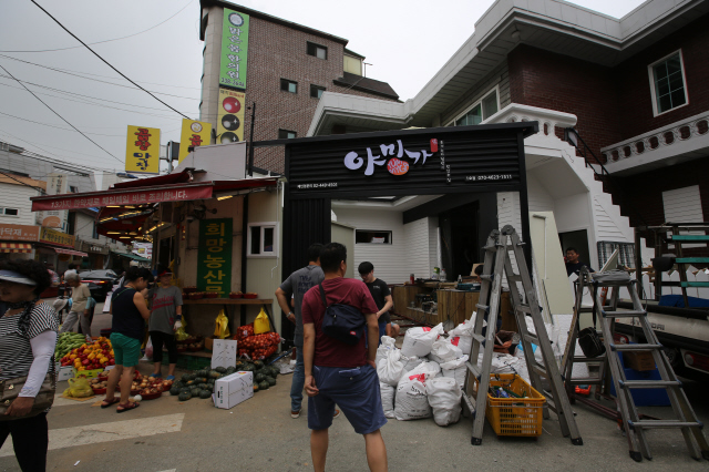 8월11일 서울 마포구 망원동, 곱창 가게가 빠진 자리를 돈가스 가게로 꾸미는 공사가 한창 진행 중이다. 류우종 기자