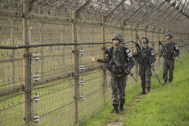 8월11일 오후 휴전선 서부전선 남쪽에서 군인들이 경계 근무를 서고 있다. 한겨레 김성광 기자