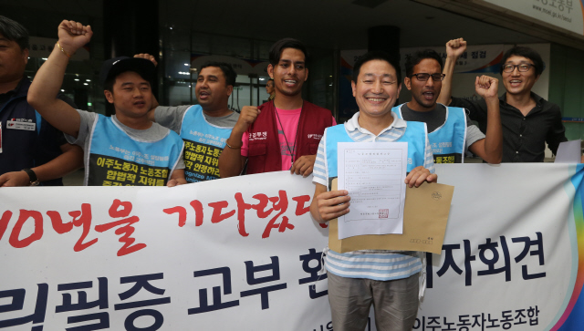 이주노조)에 노조 설립 신고증을 발급했다. 6월25일 대법원의 이주노조 합법화 판결 뒤 두 달 만이다. 이주노조 위원장은 “노예 사슬을 끊어내겠다”고 했다.