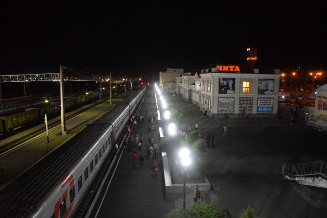 열차 출발 셋째 날, 새벽 1시께 도착한 치타역 모습. 일제시대 수많은 조선인들이 저마다의 사연을 안고 거쳐간 곳이다.