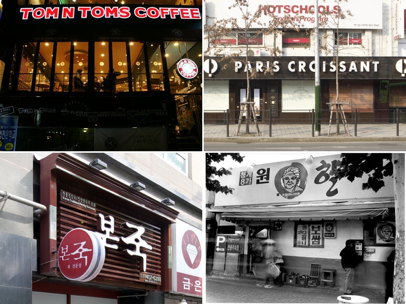 탐앤탐스, 파리크라상, 원할머니, 본죽(왼쪽 위부터 시계방향으로)은 회사 오너에게 수억원의 상표권 로열티를 제공하는 ‘상표권 장사’를 하고 있었다. 왼쪽 위부터 시계방향으로 한겨레 자료, 한겨레 자료, 원앤원 제공, 정용일 기자.