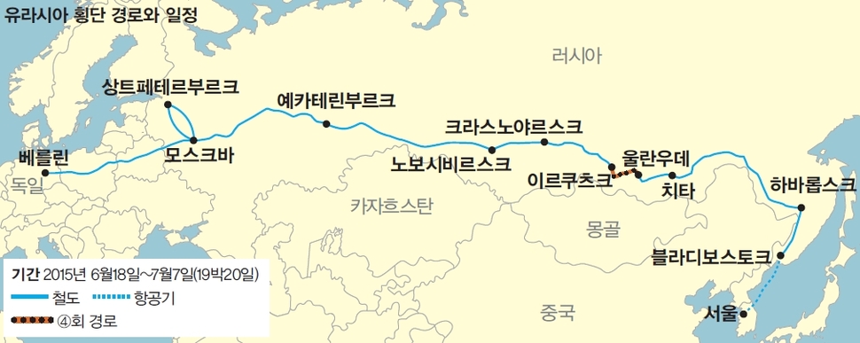 열차가 서행하며 이르쿠츠크역에 도착할 기미를 보이자 남북 노동자들은 서로 작별 인사를 했다. 통일이 되면 꼭 만나자고 다짐했다. 부질없는 기약이 아니기를 바랐다. 승강장에 내리니 다른 칸에 탔던 북한 노동자들도 다가왔다. 아쉬운 웃음으로 인사를 나눴다. 승객들은 수감시설에서 석방된 기분으로 역사를 빠져나왔다.