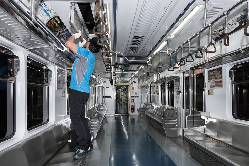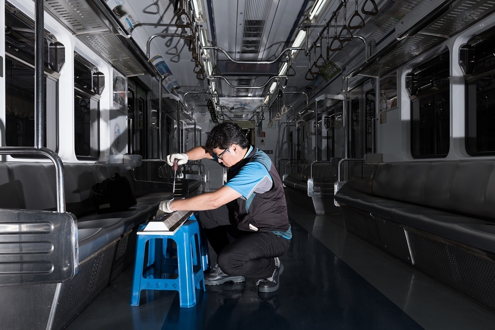 전동차 바퀴 밑으로 기어 들어간다. 모터를 살핀다. 전기를 바퀴에 전달하는 장치다. 기름이 마르면 마찰력 때문에 열이 발생한다. 바퀴가 돌아가지 않고 끌려가면 큰 사고로 이어진다. 전동차 밑바닥을 기어 윤활유를 넣는다. 순식간에 흰 방진복이 기름때와 먼지로 새카맣게 변했다. 비 오듯 땀이 흐른다. 다시 바퀴 밑으로 들어가 제동장치를 점검한다. 대형 나사를 조이는 공구 래칫을 꺼낸다. 10kg 가까이 되는 브레이크슈를 푼다. 바퀴에서 8개의 브레이크슈가 떨어져나온다. 새 부품으로 교체한다. 다른 정비사가 전동차 옆면 커버를 연다. 대용량 콘덴서. 전동차의 전기 전자장치다. 손상된 접촉자를 교체한다. 30여 명의 정비사가 볼트 하나, 전선 하나를 꼼꼼하게 살핀다. 전동차가 머리에서 발끝까지 새 옷으로 갈아입는다. 때 빼고 광낸 열차의 얼굴이 빛난다. 열차가 기지국을 떠난다. 성수역에서 첫 손님을 태우고 긴 여행을 떠난다. “전동차 기능을 알아야 해요. 단순한 작업이라도 지하철 작동 원리를 알아야 할 수 있는 일이죠. 그래서 더 재미있어요.” 현진씨가 해맑게 웃는다. 전동차는 제어 방식에 따라 저항차, 초퍼(Chopper)차, 인버터제어전동차(VVVF)로 나뉜다. 저항차는 1974년 서울지하철이 처음 개통할 때 일본에서 수입한 1세대 전동차다. 천장에서 선풍기가 돌아가는 전철이다. 초퍼차는 1980년대 영국에서 수입한 2세대 전동차로 제어장치에 저항기 대신 반도체 소자가 들어갔다. 1990년대 이후 3세대 전동차인 인버터제어전동차가 들어왔다. 현대로템에서 만든 신형 인버터제어전동차는 ‘신조차’라고 부른다. 현대자동차로 따지면 포니, 엑셀, 엑센트, 신형 엑센트인 셈이다. 성권씨는 저항차부터 신조차까지 모든 전동차를 정비한다. 이명박 전 대통령이 25년 폐차 규정을 없애, 늙고 병든 저항차가 아직도 운행되고 있기 때문이다. “전동차 정비 업무가 안전과 직결되어 있어요. 브레이크슈 같은 부품의 마모 상태를 꼼꼼히 보지 않고 차를 내보내면 슈가 완전히 닳아 바퀴에 눌어붙어 불이 나고 대형 사고로 이어질 수 있죠. 내 가족이 매일 타는 전철인데, 신경을 곤두세우고 보게 돼요.” 현진씨의 전동차 정비 경력은 13년. 공고 전자통신과를 나와 2003년부터 서울도시철도공사 고덕기지에서 일했다. 지금은 경정비 업무를 하고 있지만, 도시철도공사에서는 전동차의 모든 부품을 완전히 분해해서 정비하고 다시 조립하는 중정비 일을 했다. 그는 공사 직원이 아니라 하청업체 소속이었다. 2008년 공사는 외주화했던 정비 업무를 자회사로 전환했다. 비정규직 정비공 98명 중에 80%가 잘렸다. 아무 잘못도 없는 그는 5년 넘게 손때가 묻어 정든 전동차와 헤어졌다. 꼼꼼하게 보지 않으면 대형사고