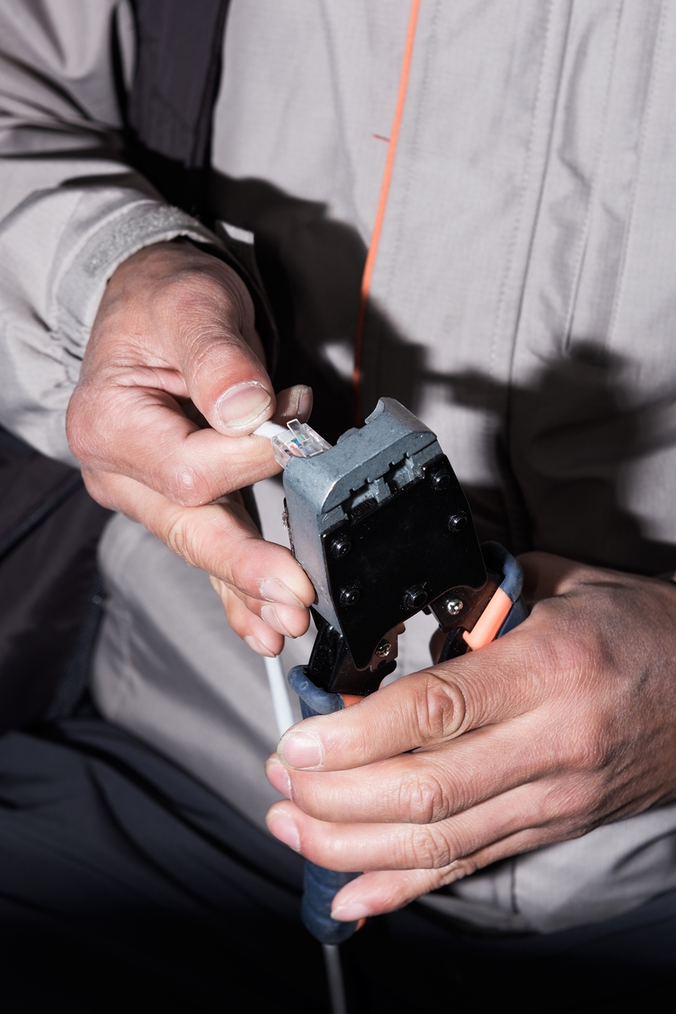 모뎀, 셋톱박스, 와이파이(WiFi) 공유기를 꺼낸다. 인터넷 텔레비전과 전화, 컴퓨터를 연결하기 위한 3종 세트다. 피복 탈피기로 동축케이블을 열 바퀴 돌린다. 검은 피복을 벗겨내고 케이블을 모뎀에 연결한다. 왼손에 랜선, 오른손에 태커(대형 스테이플러)를 든다. 탈칵, 탈칵, 탈칵…. 컴퓨터와 전화기가 놓인 작은방에서 텔레비전이 있는 거실까지 랜선을 두르고, 태커를 박는다. 니퍼(전선이나 철사를 절단하는 공구)로 랜선 끝부분 피복을 벗긴다. 주황·파랑·초록 등 두 가닥씩 꼬여 있는 8개의 선을 하나씩 돌려서 푼다. ‘랜툴(인터넷선 연결 공구)’을 쥔다. 우둘투둘한 8개의 선을 깔끔하게 자른다. ‘RJ-45’라고 부르는 캡에 8개의 선을 꽂고 랜툴로 집어준 뒤 모뎀에 연결한다. 모뎀 불이 세 개만 들어온다. 낭패다. 바닥을 돌며 케이블선을 살핀다. 동축에 살짝 박힌 스테이플러를 발견해 제거했다. 모뎀에 8개의 불이 켜졌다. 텔레비전을 켠다. 머리에 맺힌 땀을 소매로 닦는다.