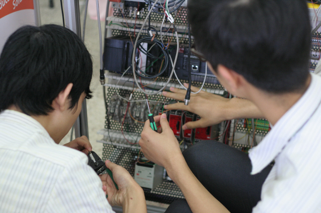 마이스터고등학교인 서울로봇고 학생들이 학교 시스템통합실에서 안전 시스템 실습 수업을 받고 있다. 단비뉴스 제공