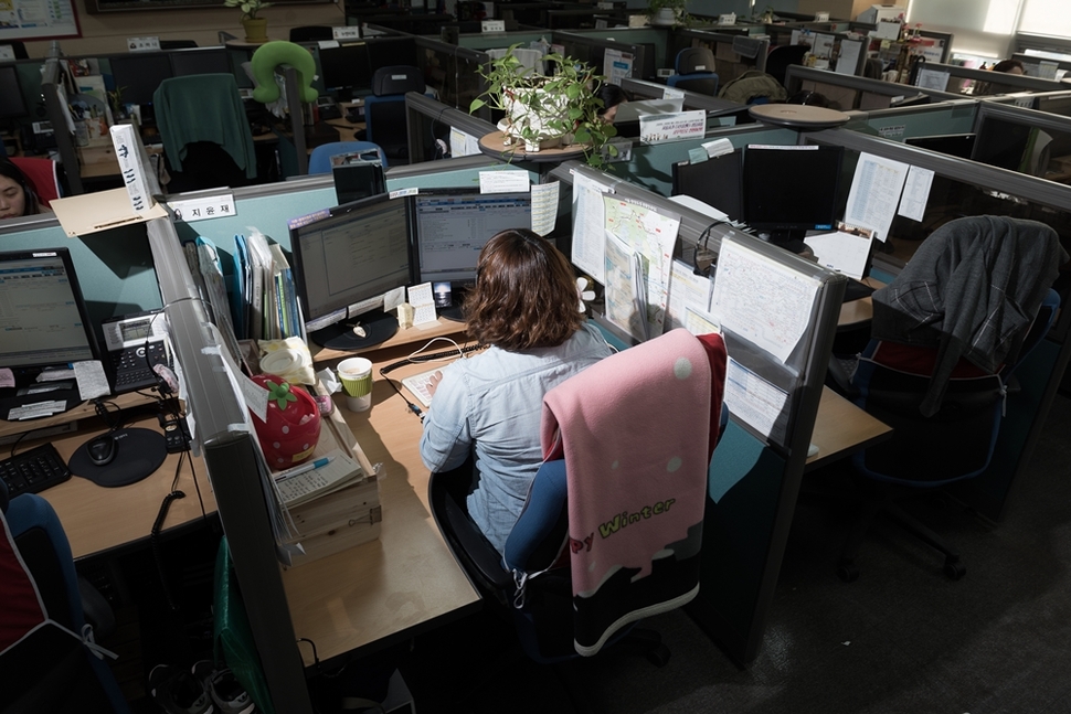 그의 열 손가락이 쉴 새 없이 움직인다. 서울시와 무관한 문자 상담에도 정성껏 답변한다. “저희를 골탕 먹이려고 이런 문자를 보내나 하는 생각이 들 때도 있지만, 시민이 정말 필요해서 물어본다고 생각하고 일해요. 그렇게 마음먹지 않으면 이 일을 하지 못하거든요.” 민원 처리 후 미선씨가 울었다 문자 상담이 이어진다. 수신 메시지 리스트에 메시지가 쌓인다. 블록을 처리하지 못해 쌓이면 게임이 끝나는 테트리스(다른 모양의 7가지 블록을 이용하는 게임)를 하는 느낌이다. 마음이 조급해진다. 손놀림이 더욱 빨라진다. 민원 내용을 검색하고, 내용을 요약해 문자를 발송하는 손놀림이 현란하다. ‘기가급’ 정보처리 실력으로 ‘테트리스’ 블록을 처리한다. ‘내일힐링캠프하고안녕하세요누구나와요문자주신상담원’ ‘안녕하세요는요’ ‘남자 김정민이냐?’ ‘프로배구하고 여자프로농구경기 결과좀요 문자주신상담원 누구예요’ (010-****-****) 한 사람이 보낸 문자다. 지금까지 30통 넘게 보냈다. 한숨이 나온다. 성희롱이나 폭언이 아니어서 악성 민원으로 처리하기도 어렵다. 마음을 다스리고 자판을 두드린다. 그의 옆자리, 김미선(가명) 상담사의 헤드셋 너머로 악을 쓰는 여성의 목소리가 들려온다. 주변 상담사들의 시선이 일제히 미선씨를 향한다. SH공사(옛 서울시도시개발공사) 아파트 거주민인데 위층 배관 공사 뒤 물이 샌다는 항의다. 책임자를 바꾸란다. “시민님 죄송합니다. 오늘은 휴일이어서 담당자를 연결해드릴 수가 없습니다. 민원 사항을 SH에 전달하겠습니다”를 반복하지만 소용없다. 오늘 중으로 고쳐놓으란다. 전화선을 타고 흘러온 분노의 음성이 귀청을 때린다. 경멸의 언어가 귓가를 후려친다. 서울시 담당자를 연결하란다. 전화가 끊어졌다. 미선씨의 눈시울이 붉어진다. 서울시청 당직실에 전화를 걸어 상황을 알린다. 팀장과 동료들이 미선씨를 위로한다. 강성 민원(민원인의 행위가 즉시 법률상 범죄에 해당되지는 않으나 근무자의 정상적인 업무 수행을 불가능하게 하는 등 악성 민원 전환 가능성이 매우 높은 민원)이어서 팀장도 통화 내용을 함께 들었다. 통화 도중에 끊어졌기 때문에 전화를 해주는 게 원칙이지만 ‘아웃콜’을 하지 않기로 한다. “심한 민원 받고 나면 한참을 울어요. 쉬고 나서도 마음이 가라앉지 않고 다음 전화를 받는 게 두려워져요. 많은 상담사들이 불안감을 감소시키는 약을 복용하고 있어요.” 윤재씨의 목소리가 떨린다. 악성이나 강성 민원을 받는 날은 하루 종일 롤러코스터를 타는 느낌이다. 마음을 가라앉힌 김미선 상담사가 다시 전화를 받는다. 공사 소음과 먼지, 교통, 병원 민원을 처리한다. 어느 남성에게서 전화가 걸려온다. “저희는 법원 업무를 하고 있지 않습니다만 인터넷 검색해서 이혼 서류를 찾아드릴 수는 있습니다.” 갑자기 화를 낸다. 말투가 왜 그 모양이냐, 왜 불친절하냐, 당신 이름이 뭐냐고 소리친다. “시민님, 불편을 드려서 죄송합니다”를 연발하지만 소용없다. 그의 이름을 확인한 민원인이 거칠게 전화를 끊는다. 그가 헤드셋을 내려놓고 휴게실로 향한다. 목소리가 좋은 윤재씨는 카드사 콜센터에서 일했다. 정확한 발음과 속도, 억양, ‘솔톤’(도레미파솔라시도의 솔 높이 음)을 훈련했다. 지금은 어색하고 고객을 불편하게 한다고 잘 사용하지 않지만 그때는 솔톤이 유행이었다. 고객이 상처받지 않는 단어를 사용하는 연습을 계속했다. 아웃바운드(전화를 걸어 상품을 파는 일)는 적성에 맞지 않아 인바운드(고객 응대) 업무를 했다. 하지만 회사는 영업을 요구했고 카드 발급을 할당했다. ‘순수’ 인바운드 일을 찾다가 함께 일했던 언니의 제안으로 2009년 10월 다산콜센터에 들어왔다. 소개해준 언니는 효성 ITX, 윤재씨는 MPC 소속이었다. 서울시가 상담 업무를 위탁한 업체 이름이다. 윤재씨 회사는 올해 초 ‘메타넷MCC’로 바뀌었다. 상담사들이 먼저 전화 끊을 권리