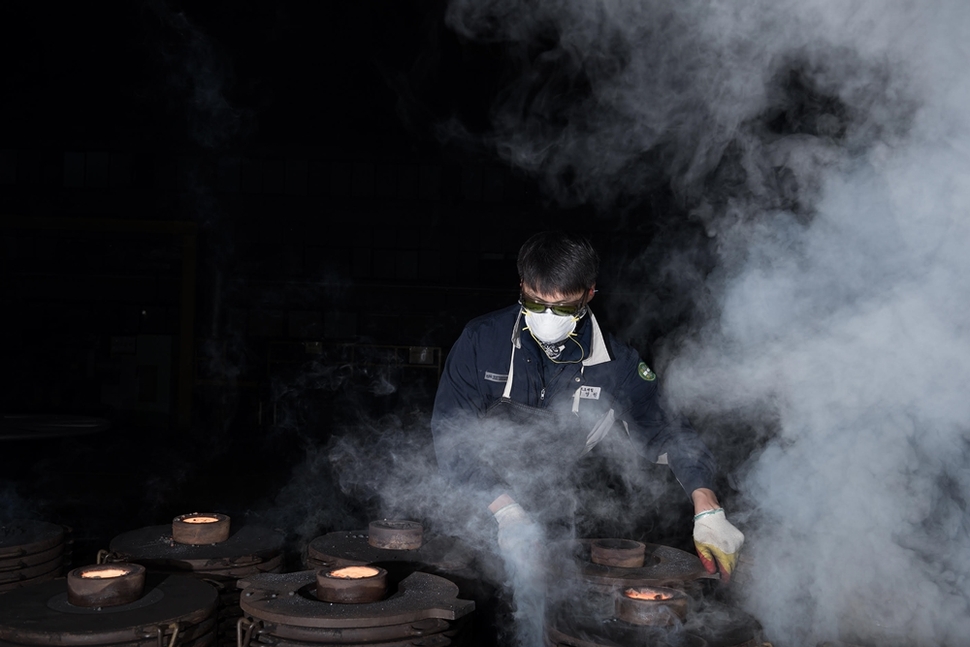국내에서 피스톤링을 생산하는 업체는 영원씨가 일하는 대한이연과 유성기업뿐이다. “모래를 배합해 조형틀을 만들고 쇳물을 끓여 붓고 피스톤링의 표면을 가공하는 고난도의 모든 작업이 일일이 손으로 이루어집니다. 안전과 직결된 제품을 만든다는 자부심으로 일하고 있습니다.” 영원씨의 손을 거친 1500도 쇳물이 10원짜리 동전보다 얇은 링으로 탄생하는 데 걸리는 시간은 최소 20일이다.