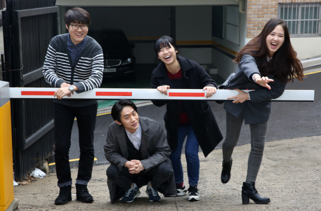 구글 뉴스랩 펠로우십 장학생 16명 중 4명이 <한겨레21>과 함께한다. 왼쪽부터 김동관, 박리세윤, 이미진, 최유진씨. 전통 매체인 <한겨레21> 출입구 바리케이드를 넘고 있다. 류우종 기자