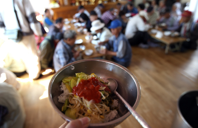 ‘흰머리’가 조만수에게 귀띔했다. 흰머리와 덩치는 토요일마다 결혼식장을 돌며 평소 못 먹는 고급 음식을 먹었다. 일면식 없는 사람의 결혼을 “축하”해주고 하객을 가장해 식권을 받았다. 조만수도 한때 주말마다 결혼식장에 ‘밥 먹으러’ 다녔다. 식장에서 동자동 사람들이나 옛 노숙 동료들을 꽤 만났다. 최근엔 폐회로텔레비전(CCTV) 감시가 심해져 결혼식장 투어는 그만뒀다. 할머니들의 식사가 계속되는 동안 ‘조만수들’은 5분 만에 식판을 비우고 일어섰다.