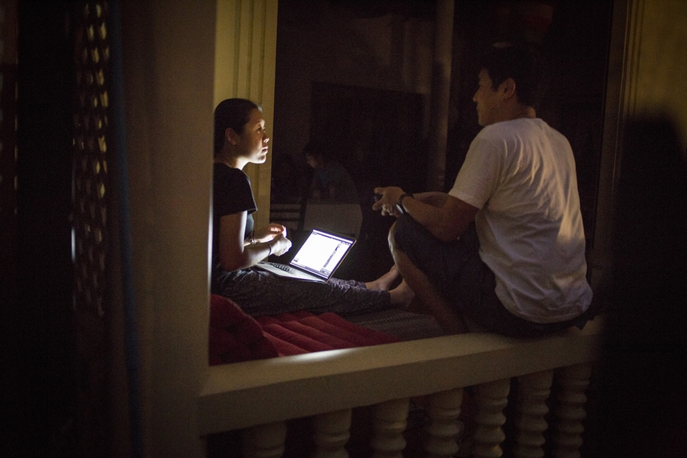 “남편이 임신한 아내의 배에 손을 얹고 있는 사진❶은 좋은데…. 다른 사진에는 부부가 서로 외로워 보여. 사진에 친밀감이 부족해.” 튜터(Tutor)를 맡은 사진가 오카하라 교스케가 학생인 얀공의 사진을 보며 말했다. 대학을 갓 졸업한 얀공은 캄보디아 여성과 결혼한 중국 남성을 따라다니고 있었다. 오카하라와 얀공은 남은 기간 이들 부부와 어떻게 더 가까워질 수 있을지 상의했다.