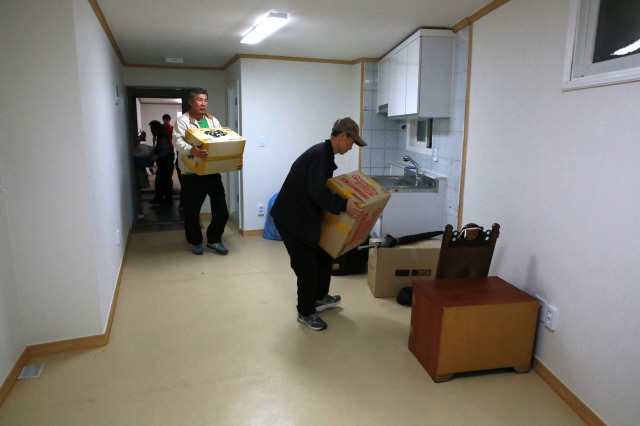 연희동 매입임대주택으로 이사 온 동자동 9-20 퇴거 주민들이 각자의 방으로 짐을 나르고 있다.