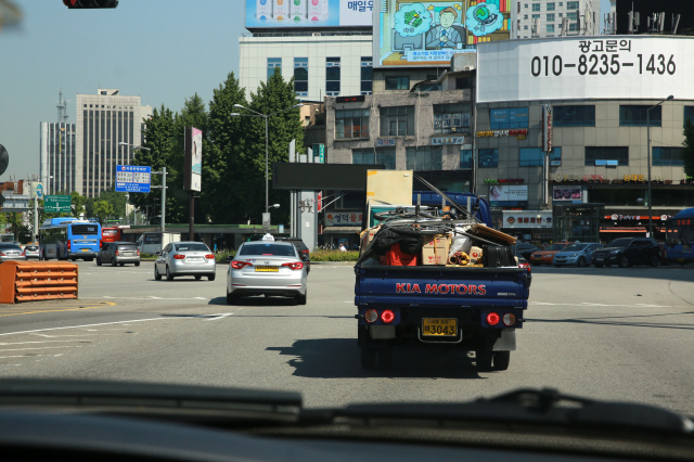 서울시 용산구 동자동 9-20에서 강제퇴거된 주민 6명의 이삿짐이 2015년 5월21일 1t 트럭에 실려 새 거처인 서대문구 연희동으로 옮겨지고 있다.