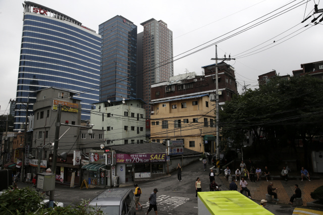 수십 년 거듭된 ‘정비’와 ‘정화’로 동자동(서울 용산구)과 남대문로5가(중구) 주위엔 올려다보기도 벅찬 빌딩숲이 솟았다. ‘9-20 강제퇴거 사태’가 벌어지기 전인 2013년 9월의 동자동. 한겨레 탁기형 선임기자