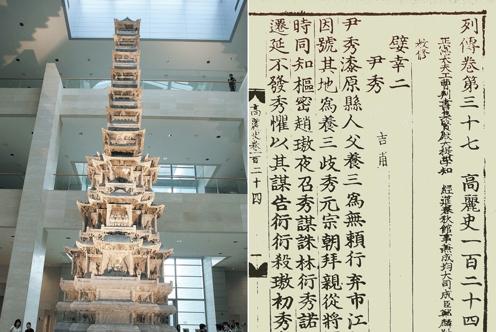 경천사지 10층 석탑은 1348년(충목왕 4년) 강융, 고용보가 원나라와 고려의 왕실 복을 기원하며 만들었다. 강융은 본래 노비였으나 충선왕의 총애를 받아 폐행이 되었고, 고용보는 원나라의 환관이 되어 권세를 부리다가 공민왕에 죽음을 당하였다(왼쪽). ‘폐행전’에는 모두 36명의 이름이 올라 있다. ‘윤수(尹秀) 열전’을 보면, 윤수는 매사냥을 좋아하는 충렬왕의 기호를 잘 맞춰 폐행이 되었고, 그의 아들 윤길보는 격구(擊毬)를 잘해서 충선왕의 총애를 받았다. 국립중앙박물관 제공