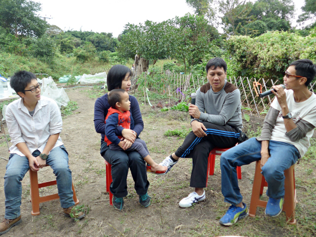2015년 12월 홍콩의 사회적 기업 ‘굿패밀리팜’이 주최한 추수 기념 행사에서 주민 가족과 천자훙 공동대표(맨 오른쪽)가 대화를 나누는 모습. 굿패밀리팜 제공