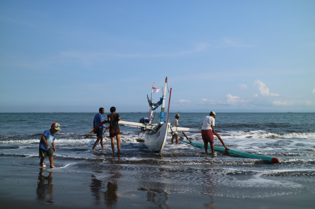 검은 모래사장이 펼쳐진 바다는 사실 특별할 것이 없었다. 호화로운 파라솔이 펼쳐진 발리 동남부의 해변에 비하면 다소 썰렁하기까지 했다. 배 한 척이 일과를 마치고 들어오고 있었다. 한 가족으로 보이는 어부들이 허리춤까지 오는 바다로 뛰어들어 배를 밀었다. 바다 안에서는 파도가 힘을 보탰는지 좀 수월해 보였는데, 해변에 다다를수록 힘에 부치는 듯했다. 호리호리한 할아버지의 다리가 위태로워 보였다.