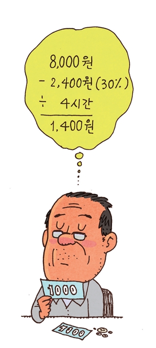 수입 4만원(13시간 근무)-1만2천원(회사수수료)