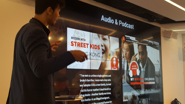 홍콩 언론인 바비 챈이 멀티미디어 요소가 결합된 ‘홍콩 거리의 아이들’을 어떻게 제작했는지 설명하고 있다. 바비 챈은 이 보도로 ‘구글 디지털 저널리즘 어워드’를 수상했다.
