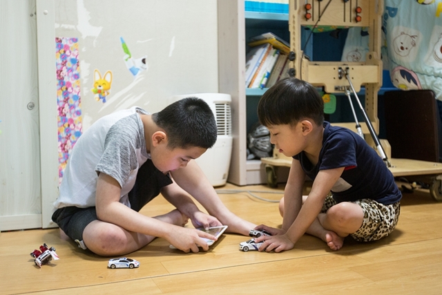 초등학교 5학년인 현준은 일반 학교에 다닌다. 일반반 수업과 특수반 수업을 함께 듣는다. 동생 현철은 장애아전담어린이집에 다닌다. 부모님에게 현준이의 학교생활에 대해 물었다. “밝은 애였는데, 요즘은 대화를 안 해요. 길게 얘기를 안 해요.” 엄마 최영미(35)씨가 말했다. 현준은 기자들이 방문한 날, 잠깐 인사만 나누고 건넌방에 가서 내내 스마트폰 게임을 했다. 이따금 게임이 뜻대로 되지 않는지 소리를 지르기도 했다.