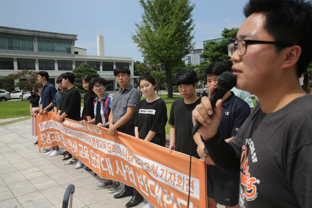02 이화여대 본관 점거 농성과 대규모 시위 사태를 부른 교육부 평생교육 단과대학(평단) 사업 문제가 동국대로 확산되고 있다. 8월10일 동국대 총학생회는 중구 서울캠퍼스에서 기자회견을 열어 “평단 사업을 철회하라”고 요구하며 농성에 돌입했다. 안드레 동국대 총학생회장은 “사업계획 과정에서 구성원의 충분한 합의가 이루어지지 않았다”며 “이번 사업이 ‘학위 장사’에 불과하다”고 지적했다.