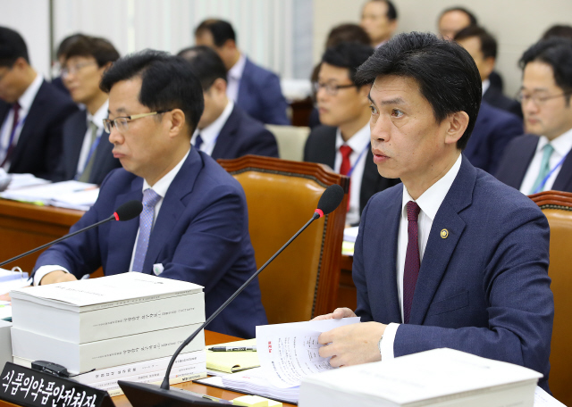 10월7일 국회 보건복지위원회 국정감사에서 손문기 식품의약품안전처장(오른쪽)은 여야 의원들로부터 유전자변형식품(GMO)과 관련한 질의를 집중적으로 받았다. 연합뉴스