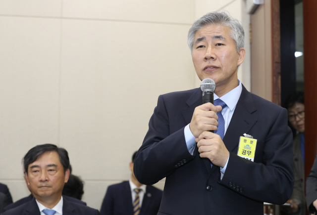 10월14일 국회 보건복지위원회 국정감사에 출석한 백선하 서울대병원 신경외과 교수가 의원들의 질의에 답하고 있다. 백 교수는 이날 국감에서 “수술 자체는 잘 마무리됐지만 합병증으로 숨졌다”고 증언했다. 연합뉴스