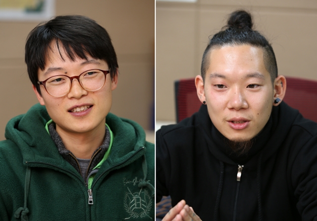 김형수(왼쪽)씨는 개신교 신자로 평화 신념을 지키기 위해, 이상씨는 군대가 조장하는 불평등 구조에 저항하기 위해 예비군 거부를 선택했다. 정용일 기자