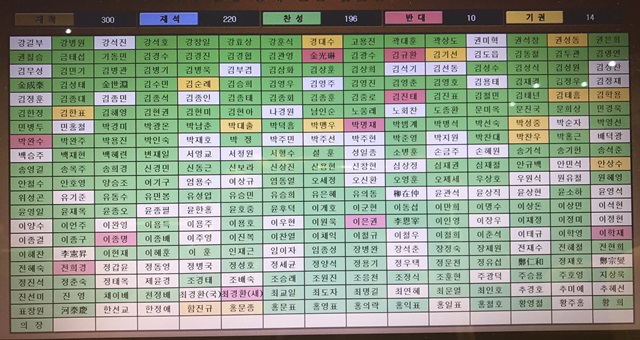박근혜·최순실 특검법안이 여야 합의로 11월17일 국회를 통과했다. 재석의원 220명 가운데 196명이 찬성했다. 기권 14명이다. 특검을 통해 박 대통령을 수사하는 데 반대한 의원은 10명이다. 최경환·김광림·이학재·김진태·박명재·김규환·박완수·이은권·이종명·전희경이다. 특검 수사 기간 70일이 지나면 현직 대통령 사상 첫 기소 여부가 결정된다.