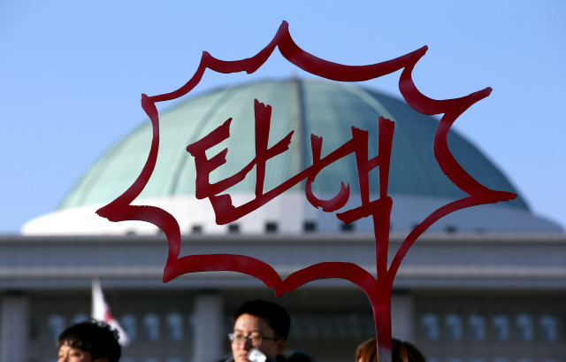 박근혜 대통령 탄핵소추안이 국회에서 가결됐다. 야 3당과 무소속 의원 172명, 새누리당 비박계 의원 37명을 더한 209명보다 25명 많은 234명이 찬성표를 던졌다. 박 대통령은 국회에서 탄핵소추 의결서를 받는 시점부터 직무가 정지됐다. 이제 급히 ‘올림머리’ 안 해도 된다.