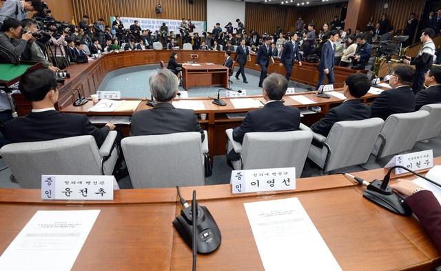04 ‘앙꼬’ 빠진 찐빵이었다. 세월호 참사 당일 박근혜 대통령의 사라진 7시간 열쇠를 쥔 핵심 증인들은 최순실 국정 농단 청문회에 모습을 드러내지 않았다. 최순실을 ‘모시고’ 청와대에 드나든 이영선 청와대 행정관과 박 대통령을 지근거리에서 보좌한 윤전추 행정관 자리엔 명패만 출석했다. 청와대는 이들이 휴가 중이라는 핑계를 대고 꼭꼭 숨겼다. 참사 당일 미용 시술을 했다는 의혹이 있는 조여옥 간호장교, 최순실의 전 남편 정윤회씨도 청문회에 나타나지 않았다. 안 나가도 그만이라는 청문회 제도, 손질이 불가피해 보인다.
