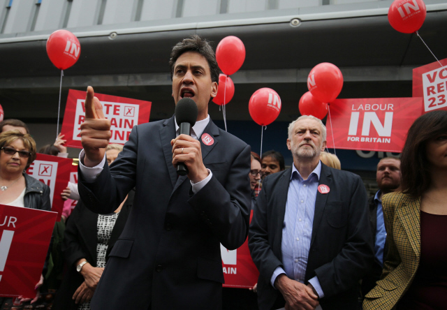 랠프 밀리밴드는 사회주의를 기반으로 한 ‘광장민주주의’ ‘시민참여 민주주의’를 바랐다. 그의 꿈을 아들 에드 밀리밴드 전 노동당 대표(왼쪽 마이크 든 이)가 현실정치를 통해 실현시키는 데 앞장서고 있다. EPA 연합뉴스