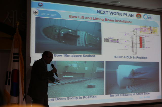 문제는 선체 인양이 연기된 이유가 대부분 미리 예측해야 할 것을 하지 못해서 생긴 일이었다는 점이다. 선체 내 어느 곳에 수거하지 못한 기름이 있는지 파악하는 일이나, 세월호 침몰 지점 주변의 해저 지형 특성은 충분히 사전에 확인할 수 있는 것이었다. 인양 관리·감독할 전문 감리업체 없어 해수부에서는 4월 말 선체 인양이 가능하다고 공언하지만 최종 검토를 거치지 않은 상황이다. 인양 방식이 상하이샐비지 쪽이 처음 입찰했을 때 제시한 해양 크레인 활용 방법에서 두 대의 바지선을 이용하는 ‘탠덤 리프팅’(Tandem lifting) 방식으로 바뀌었기 때문이다. 새로운 인양 방법은 검증이 끝나지 않았다. 이날 김현태 부단장은 4월까지 구체적 일정을 담은 공정표가 나와 있냐는 질문에 “4월 인양을 목표로 설계를 진행하고 있다. 상하이샐비지가 설계도면과 자료를 제출했고, 저희(해수부)는 국책연구기관에 그 시뮬레이션이 타당한지 검증하는 중이다. 그것이 검증되면 4월까지의 공정표를 공개할 수 있다”고 말했다. 아직 새 인양 방식에 대한 검토가 끝나지 않았다는 말이다. 공정표만 나온다고 문제가 해결되는 것은 아니다. 공정표대로 일이 진행될지가 더 큰 문제다. 이미 잔존유 회수, 세월호 선미·선수 들기에서 계속 차질을 빚은 것처럼 인양 과정에 어떤 복병이 숨어 있을지 알 수 없다. 복병을 피하려면 지금까지 인양 과정에서의 문제점과 인양 방법 변경 등을 면밀히 검토하고 잘못된 점은 없는지 확인하려는 노력이 필수적이다. 하지만 대국민 설명회에서 전체 인양 과정을 관리·감독할 전문 감리업체가 없는 것으로 드러났다. 지금까지는 영국 TMC사가 감리까지 맡고 있는 것으로 알려졌다. 하지만 김현태 부단장은 이날 “TMC사가 법적으로 감리업체는 아니다”라고 말했다. TMC사의 업무는 전체 인양 작업의 독립적 감리가 아니라 기술자문에 그친다는 의미다. 실제 TMC사는 대국민 설명회에서도 상하이샐비지와 해수부를 계속 옹호하는 모습을 보여왔다. 사이먼 버든 지부장은 인양 일정이 계속 연기되는 문제에 대해 “(인양 연기 이유에 대한) 상하이샐비지의 자료는 설명 가능한 것이다”라며 “선체 해저면에 대해서는 충분히 조사할 수 없었기 때문에 상황 대처에 어려움이 있었다. 현재 인양 지연의 가장 중요한 원인은 선미 퇴적층 상태였다고 생각한다”고 밝혔다. 상하이샐비지의 인양 연기 이유가 합리적이었다는 취지다. 누구에게도 책임 물을 수 없는 구조 해수부가 공격받을 때는 상하이샐비지와 TMC사가 동시에 감쌌다. 이날 대국민 설명회에 참석한 손혜원 더불어민주당 의원이 “해수부가 부실한 자료를 줘서 인양에 문제가 생긴 것으로 보인다”고 말하자, 지앙 옌 부사장은 “(해수부가 제공한) 정보는 대부분 정확했다”며 “(해저 지형은) 실제 잠수부를 투입해서 조사했을 때 실질적으로 확인할 수 있었다”고 답했다. 사이먼 버든 지부장도 “다른 공사와 다르게 인양은 최초에 정확한 정보를 가지고 설계하는 것이 아니다. 현장에서 작업하며 최선의 방법을 디자인하는 것이라고 생각한다”고 거들었다. 해수부도 보답했다. 상하이샐비지가 애초 인양 작업 계약 만료 기간인 2016년 12월31일까지 일을 끝내지 못했으니 지체상금을 물릴 것이냐는 질문에 김현태 부단장은 “상하이샐비지가 고의로 인양을 안 했다고 생각하지 않는다”고 답했다. 지체상금은 특정 기간 내에 계약 의무를 다하지 못했을 때 해당 사업을 맡은 업체가 지체된 시간에 따른 금액을 발주처에 내는 부담금이다. 해수부가 인양 지연 책임이 상하이샐비지 쪽에 없다고 판단하는 것으로 해석된다. 잘못된 자료가 전달됐어도 인양 계획이 해를 넘기고 결국 인양 방법까지 변경됐어도 해수부, 상하이샐비지, TMC사 가운데 누구에게도 책임을 물을 수 없는 구조가 마련된 것이다. 인양 방식의 혼란도 짚어야 할 문제다. <한겨레21>이 입수한 ‘최상환 전 해양경찰청 차장 등의 직권남용 권리행사 방해 사건’(언딘 특혜 의혹 사건) 수사 기록을 보면, 상하이샐비지가 최근 탠덤 리프팅 방식으로 인양 방법을 바꿔 도입하려는 재킹바지선 활용은 세월호 참사 초기에 결정된 인양 방식이었다. 당시 세월호 인양 논의를 주도했던 언딘의 장아무개 이사는 검찰 조사에서 “(2014년) 4월25일경 우리(언딘)가 제시한 인양 공법 중 잭업 시스템으로 인양을 하기로 (해경 등과의 회의에서) 결정되었다”고 말했다. 잭업 시스템은 재킹바지선을 활용해 유압으로 세월호를 인양하는 방안이다. 2014년 4월21일 해양경찰청이 작성한 ‘여객선 세월호 수색 및 인양 관련 쟁점’ 문건에는 잭업 방식을 “선체 밑에 넣은 체인을 인양 능력이 큰 대형 바지선을 이용하여 인양(2척의 바지선을 이용하며, 양쪽에서 체인을 감아 바지선의 가운데 빈 곳으로 침몰 선박을 부상시키는 방식)하는 것”이라고 설명한다. 당시 해경은 잭업 방식 인양을 점검하기 위해 중국에 가서 장비를 확인했다. 그 뒤 실종자 수색을 우선 요구한 피해자 가족들과 언딘 특혜 의혹 등으로 인양 논의는 중단됐다. 본격적으로 인양 방법이 다시 논의된 것은 2015년이다. 