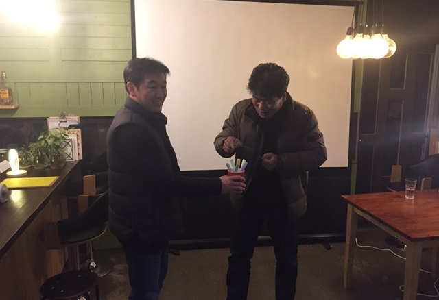 2016년 12월14일 전북 남원시 산내면에서 협동조합 ‘이음’ 조아신 기획이사(왼쪽)와 오관영 ‘이음’ 대표가 청년활력기금 대상자를 뽑고 있다. 이음 제공