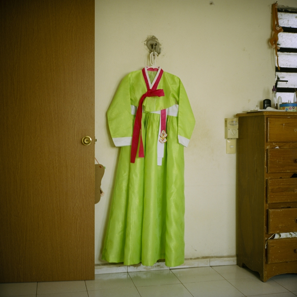 한국계 마야인 ‘애니깽’ 후손의 전통 한복이 벽에 걸려 있다. 이 후손은 할아버지 이전 세대가 썼던 한국어를 제대로 구사하지 못하지만, 이들 사이에는 한국 문화와 언어를 배우고 싶어 하는 열망이 높다. WPP재단 제공