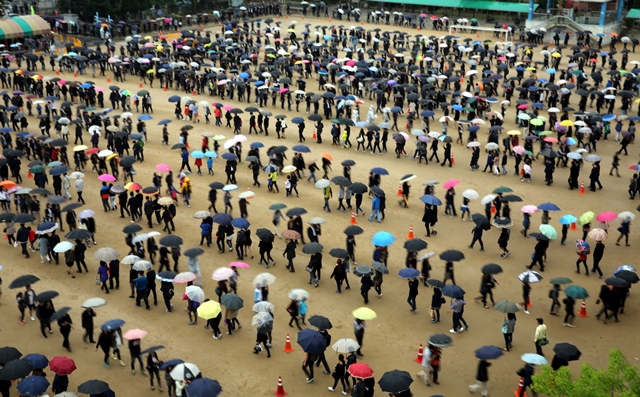 2014년 4월27일 세월호 희생자를 기리기 위해 경기도 안산 올림픽기념관에 마련된 임시합동분향소에서 추모객이 줄지어 이동하고 있다. 안산은 세월호 참사의 충격이 고스란히 전달된 피해 지역인 동시에 슬픔과 분노를 극복하는 원천이 되는 곳이기도 하다. 한겨레 이정용 선임기자
